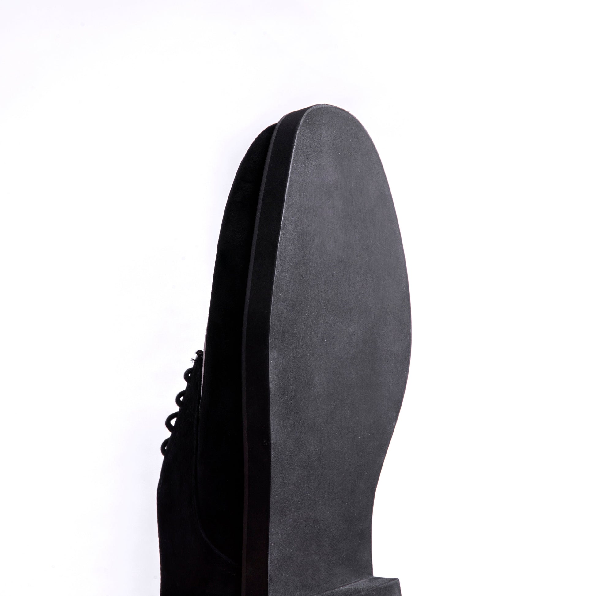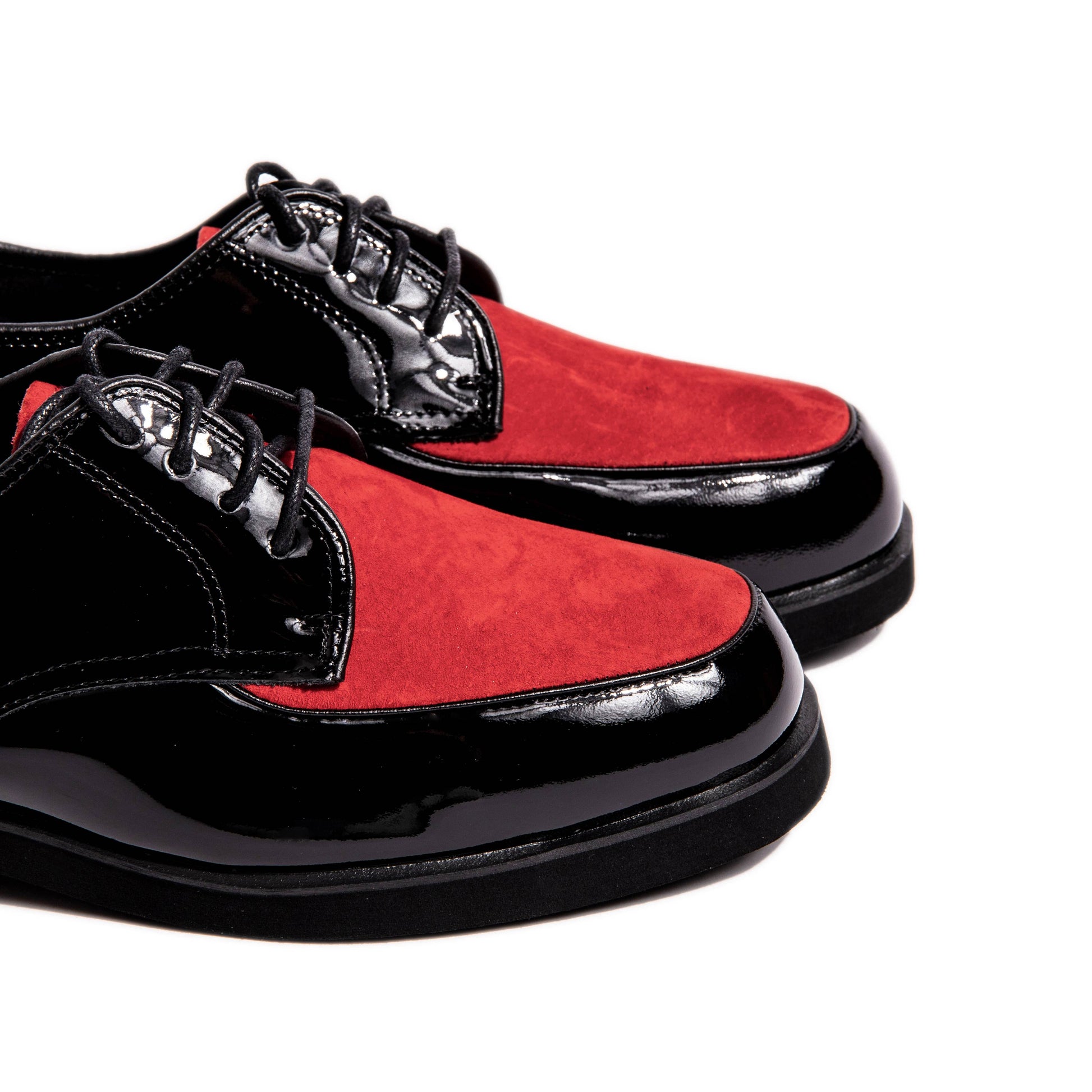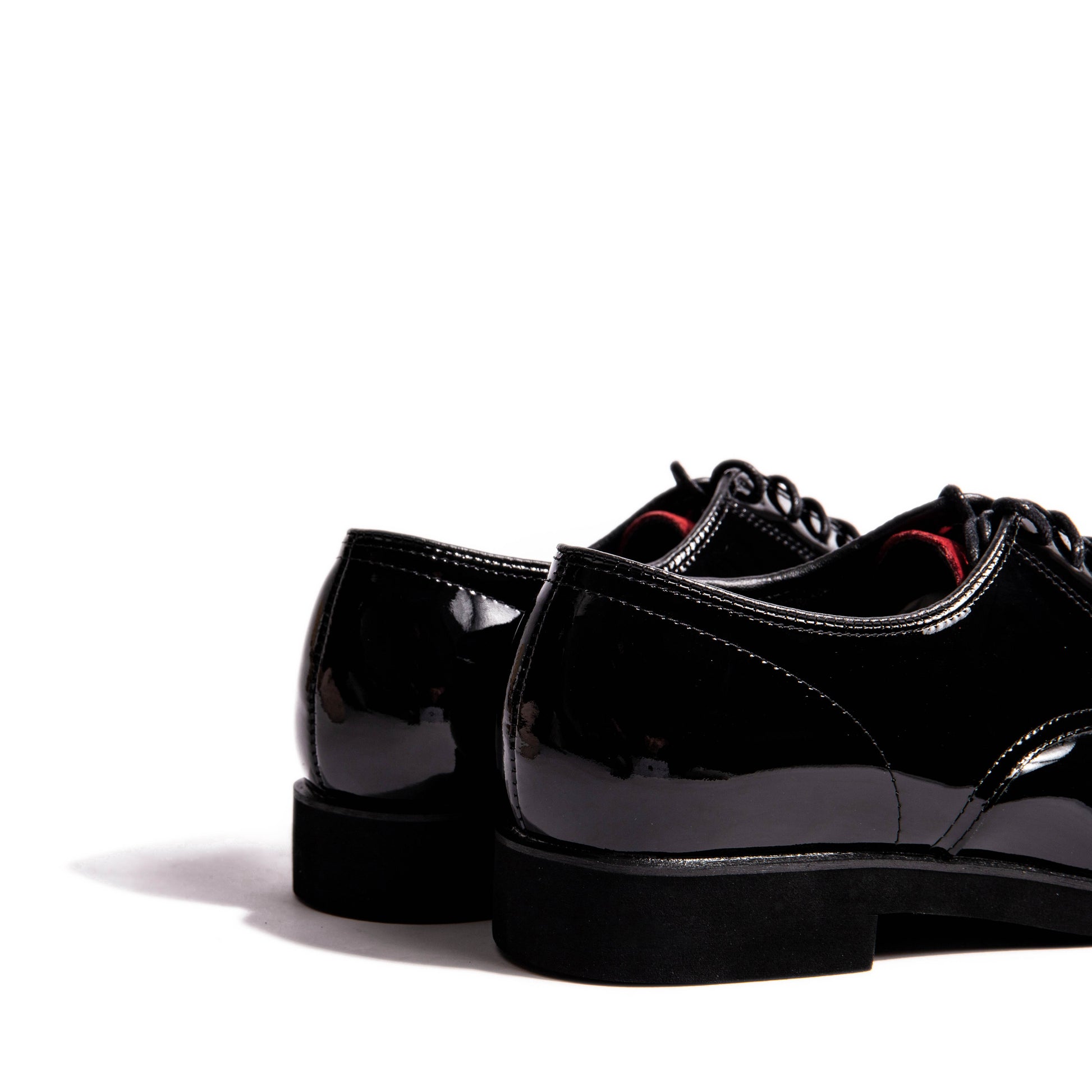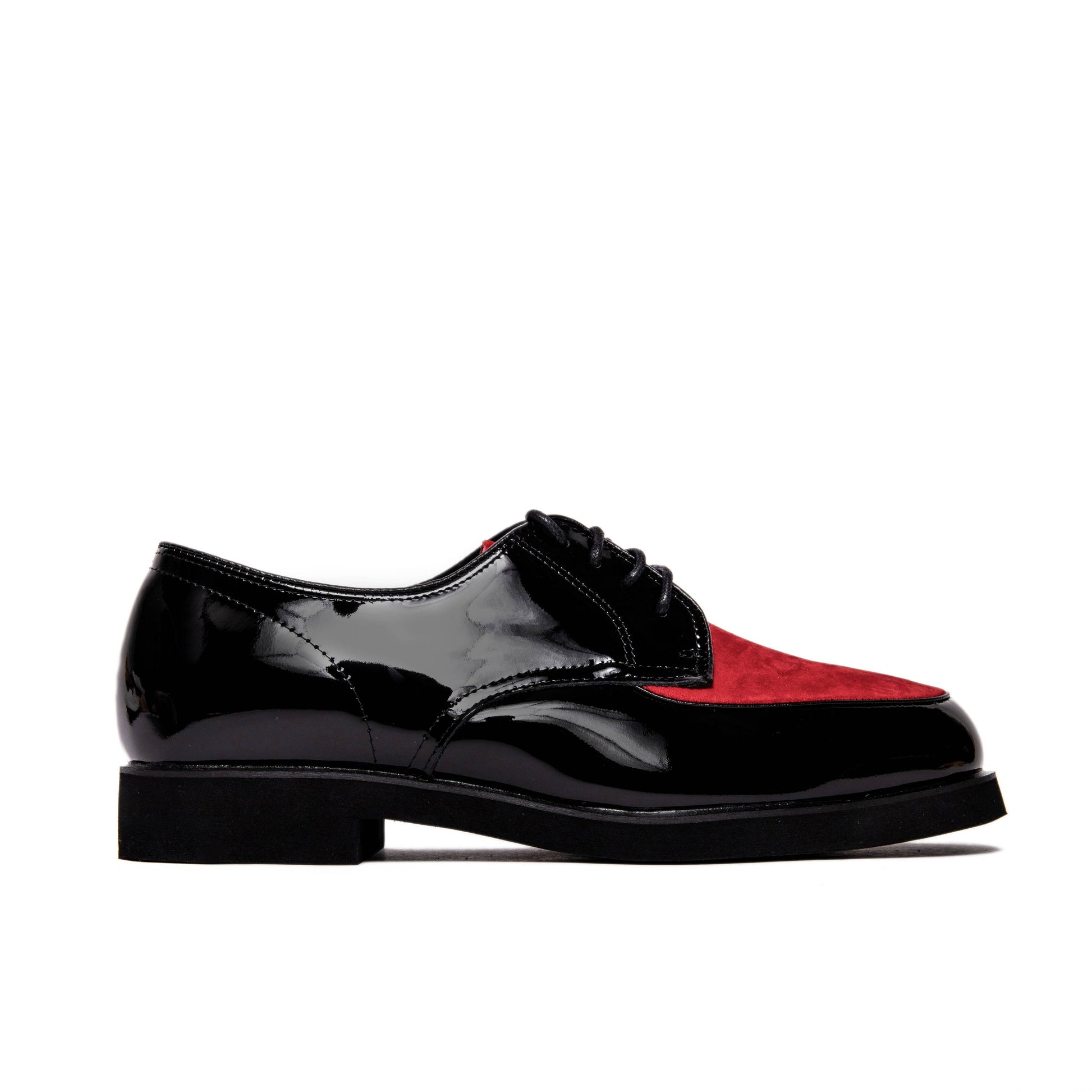 -トップ部分には起毛本革ピッグスキンスエードレザー、エナメル牛革を使用